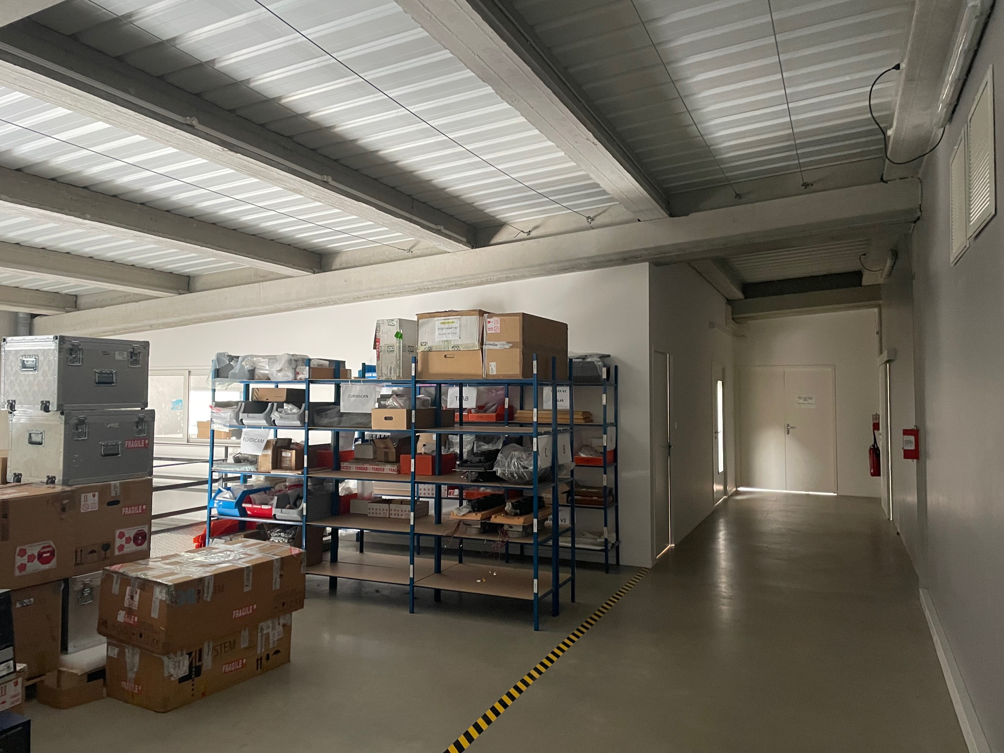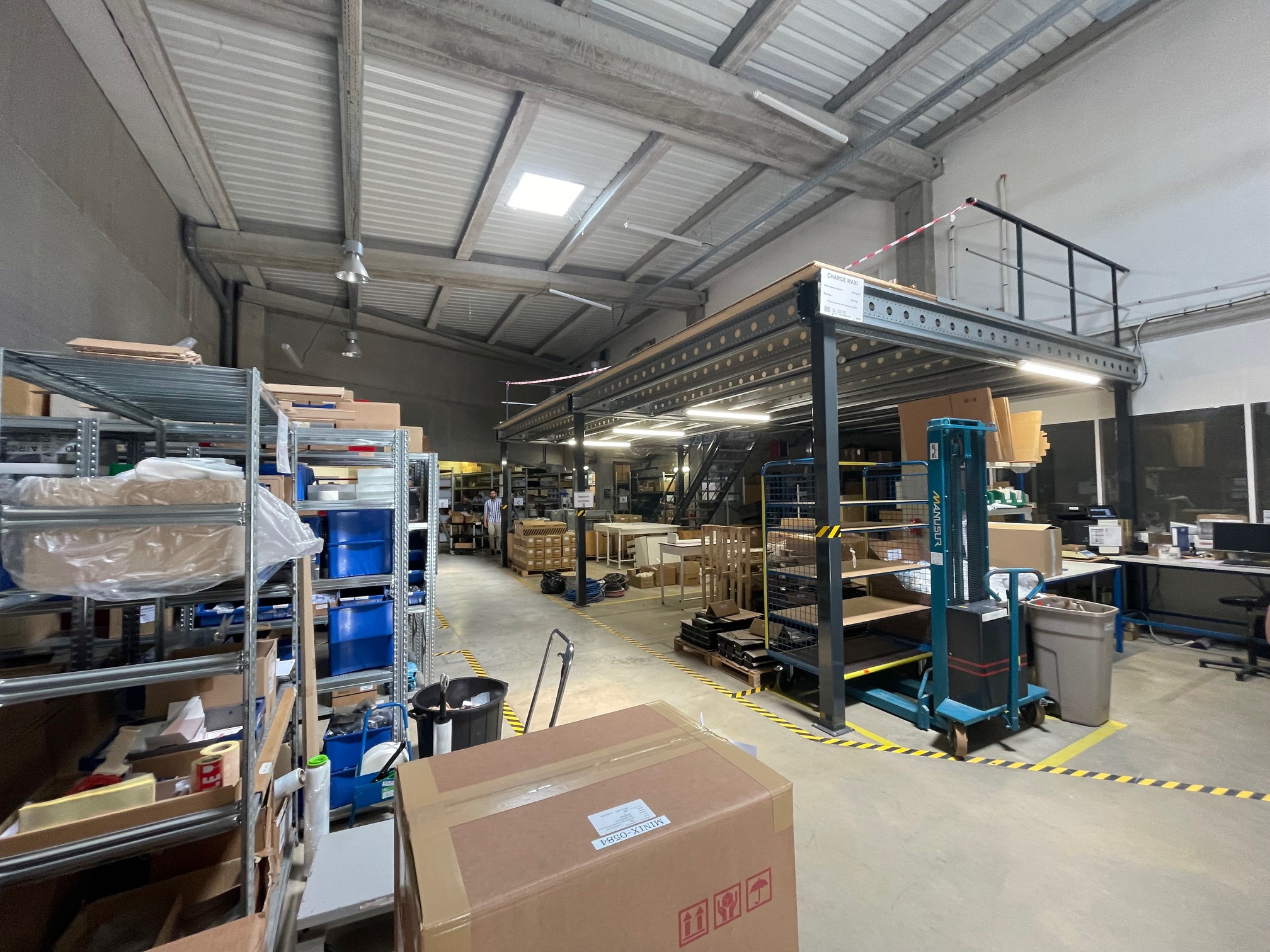 À l’étage, une surface de 200 m2 est aménagée en zone de stockage, bureaux et salle de pause.